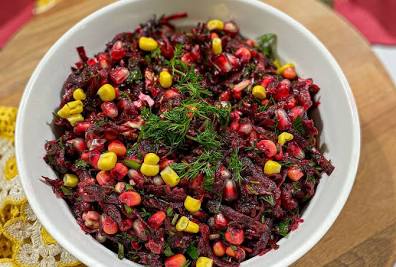 Narlı ve Mısırlı Kırmızı Pancar Salatası‘dır. Bu salata, pancarın topraksı tadını narın ekşiliği ve mısırın tatlılığıyla dengeleyen harika bir lezzettir.